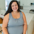 Front of woman wearing grey nursing tank top